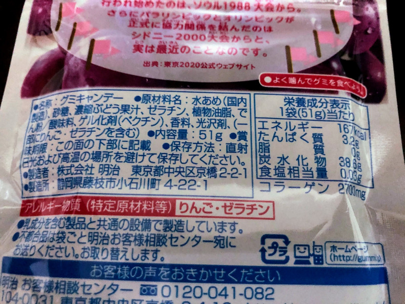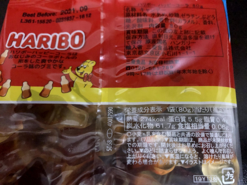 | ハリボー ゴールドベア/ハッピーコーラ | 明治 果汁グミ(ぶどう) | 明治 コーラアップ | |