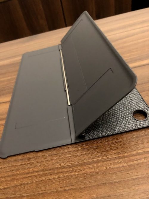 スタンド立てないと自立しませんが、そのおかげでテントモードにしたり、キーボードを付けたまま逆に畳んだりもできます。