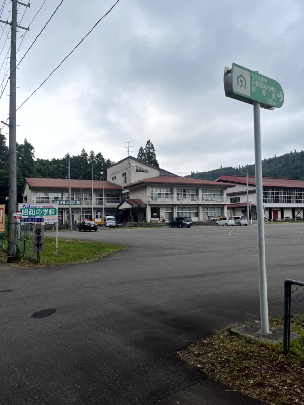 バスで地図を見てると、山の駅 昭和の学校というおもしろそうな場所を見つける。余裕があったので、目的地より手前の旅館で下ろしてもらった。